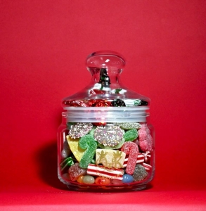 Sucre, sirop de glucose, amidon de blé, eau, amidon de maïs modifié, acide : E260, E270, E296, amidon de pomme de terre modifié, arôme, colorants : E120, E141