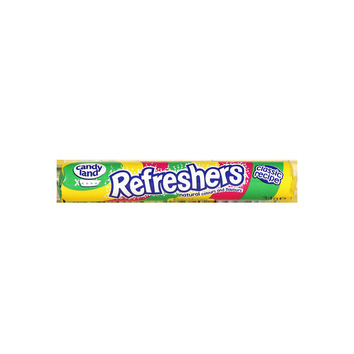 Les Refreshers font partie des best-sellers de chez QK Confiserie. Il s’agit de petites bonbons pétillantes aux goûts de fruits, enveloppés dans un rouleau d’aluminium et de papier coloré. Ces bonbons sont confectionnés avec des goûts et des colorants naturels : pour les colorer, des extraits de Paprika, de Curcumin et de Spiruline sont utilisés ! Vous retrouverez aussi les saveurs naturelles de la framboise, du citron, du citron vert et de l’orange. En plus, les Refreshers sont végans puisqu'ils ne contiennent aucune trace de graisse animale; à la place, de la noix de coco et du karité sont utilisés ! Nous importons les Refreshers spécialement pour vous, afin que vous puissiez goûter à ces pastilles fruitées légèrement moussantes en bouche, qui rappellent à tous les britanniques les douceurs de leur enfance.