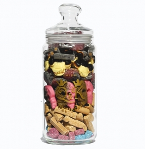Prix de la bonbonnière remplie. Celle-ci est en verre.