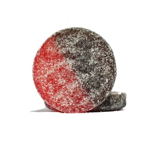 Sirop de glucose, sucre, poly dextrose, humectant (sirop de sorbitol), amidon, gélatine, acidifiant (acide citrique), jus de fruits concentrés (1%) (pomme, fraise, cassis, framboise), colorants (anthocyanes, curcumine, charbon végétal), arômes, agent d'enrobage (cire de carnauba), huile de coco.