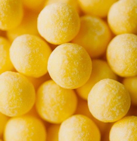 Sucre, sirop de glucose, régulateur d'acidité (acide citrique), arôme, colorant (curcumin).