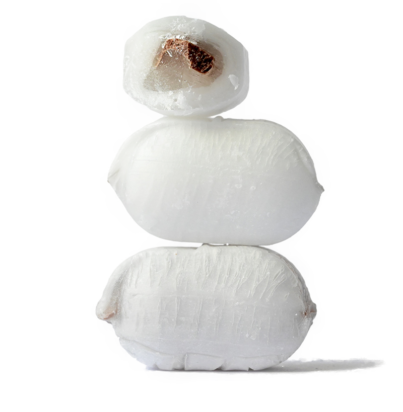 Sucre, sirop de glucose, centre chocolat 3.56% (chocolat au lait, sucre, lait entier en poudre, beurre de cacao, pâte de cacao, m.g de lait anhydre, lécithine de soja), huile de palme, arôme.